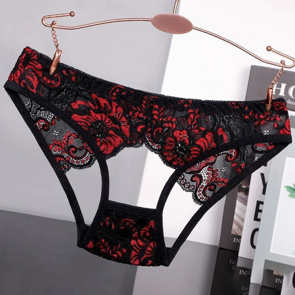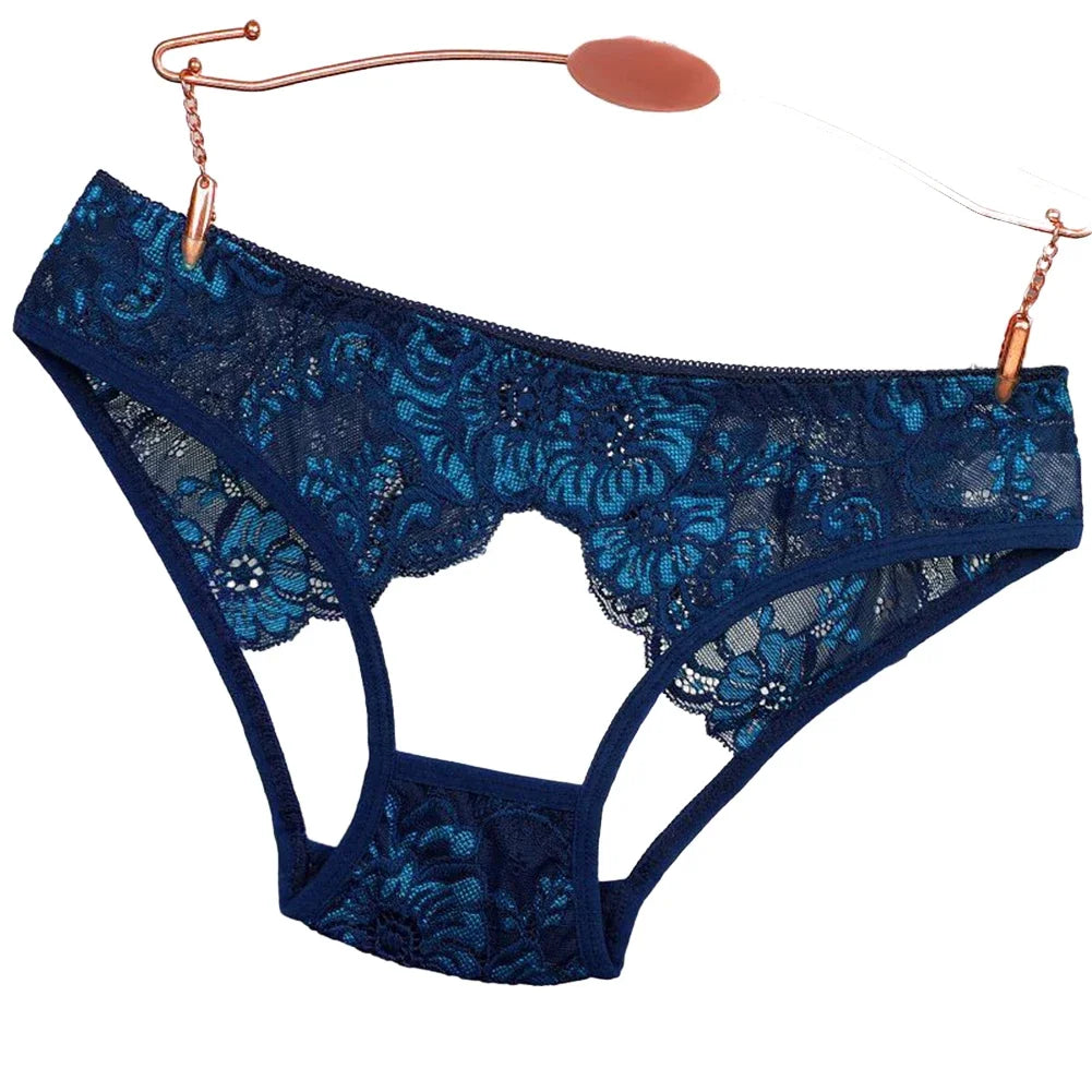 Women's Briefs Low Waist Hollow Lace French Knickers Panties Lingerie Briefs Mesh Sheer Thongs Underwear Female